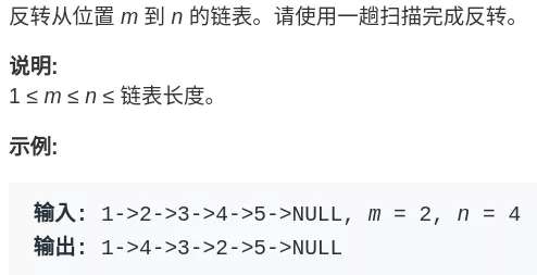 注意这里的索引是从 1 开始的。迭代的思路大概是:先用一个 for 循环找到第m个位置,然后再用一个 for 循环将m和n之间的元素反转。但是我们的递归解法不用任何 for 循环,纯递归实现反转。