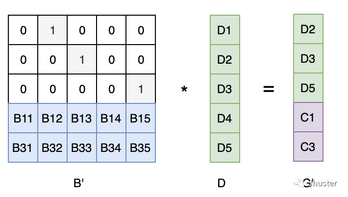 - 根据如下公式,即可计算恢复出有效数据向量 D