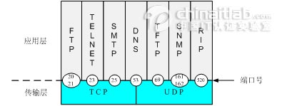 同时,有些应用层协议占用了两个不同的端口号,如FTP的20、21端口,SNMP的161、162端口。这些应用层协议在不同的端口提供不同的功能。如FTP的