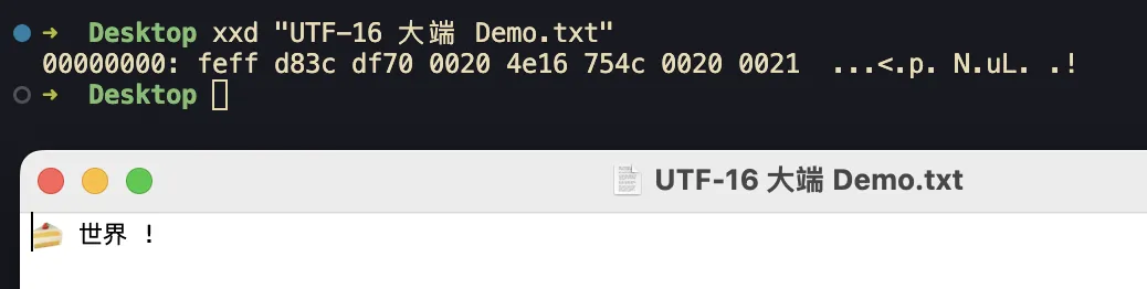 转成十六进制恰好就是 0xFEFF 这恰好也是 UTF32/16 的 BOM