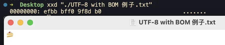 下面我构造了一个带 BOM 的 UTF-8 例子,BOM 头为 0xEF 0xBB 0xBF 可以下载看看: