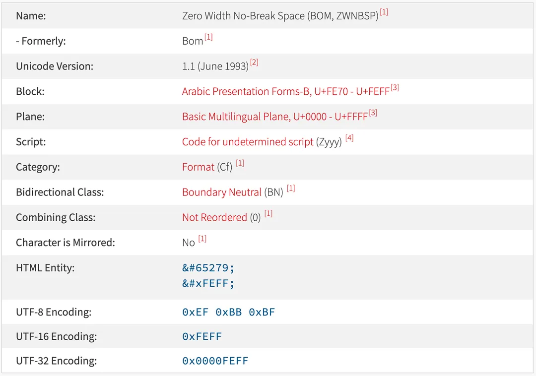实际上 0xFEFF 实际它就是一个合法的码点 U+FEFF,即所谓的零宽度空格 ZWNBSP: