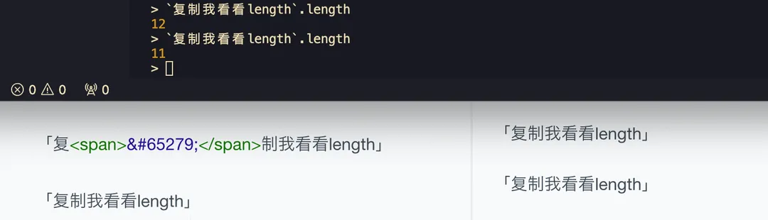 —— 但是这个 BOM 肉眼看不到很多时候会造成一些 f**k case 了,比如你复制文本的时候可能就带上了,但是你肉眼又看不到,读者可以试试复制下吗这两段然后丢到 bash / node-repl / python-repl 啥的地方去跑一下就懂了,简直是 bug 根源: