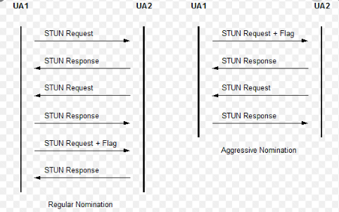 Agent完成了更新配对状态以后,最后agent将会执行第四步进行更新推荐配对处理。如果agent是一个被控方agent,它已经在绑定请求中包含了USE- CANDIDATE属性的话,从check生成的有效配对已经有一个推荐配对设置flag,这个设置为true状态。如果此配对的优先级在所有标识的配对中具有最高的优先级,这个标识则表示此媒体流或所有媒体流将使用这一对有效配对。如果agent是一个主控方agent,这个响应可能是triggered check的结果,这个triggered check在响应中返回到请求,此请求自己包含一个USE-CANDIDATE属性。这样的情况就是一个更新推荐配对示例,它可能导致对这个配对(这个配对是从原始请求学习获得)进行推荐flag设置。