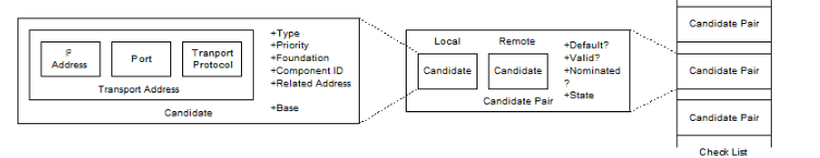 如果agent双方不是ICE感知的agent的话,媒体流构件使用此默认候选配对传输媒体流。读者可以参考以下示例来理解check list(检查列表)核心概念和与其他模块之间的关系。
