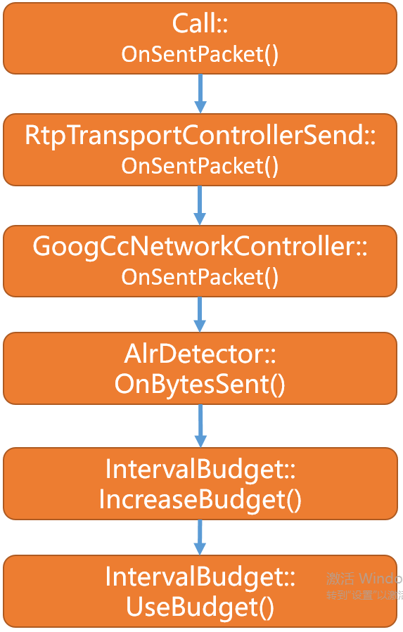 alr_budget_.UseBudget(bytes_sent)对剩余要发送的数据量进行更新。 - 调用