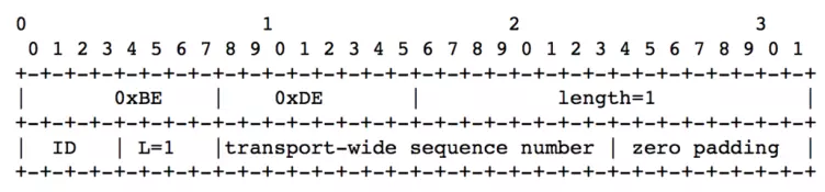 发送端在发送RTP报文时,需要在RTP头部添加新的扩展TransportSequenceNumber,该扩展格式如图6所示。