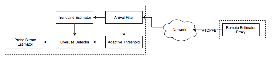 Recv-side Delay-based BWE在接收端计算预估码率结果,并通过RTCP-REMB反馈给发送端。实现Recv-side Delay-based BWE需要两步: