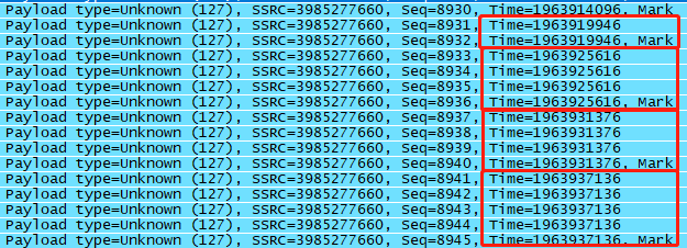 同一帧视频的不同RTP的报文时间戳是相同的,一帧视频结束的最后一包的RTP报文头的MARK位为1。所以在网络测,判断一帧视频是否接收完全,同一个时间戳的报文 的序列号是否连续,改时间戳的RTP报文是否收到MARK为1的包。