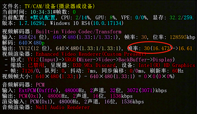 若摄像头的640*480的采集帧率是30fps,若编码器的640*480的编码性能是60fps,那么编码器的输入帧率为640*480 30fps。