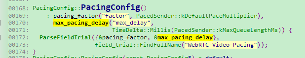 PACER模块定量计算发送网络报文数据量,相当于cache等待发送,必然会引起延迟。为了保证实时性,PACER模块有个max_pacing_delay全局变量,配置最大缓冲发送延时时间上限,若最大缓冲延时大于该值,就要重新调整PACER模块的目标码率,保证当前数据都能及时发送出去。