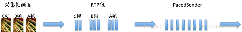 PACER的目的就是让视频数据按照评估码率均匀的在各个时间片发送出去。如下图所示: