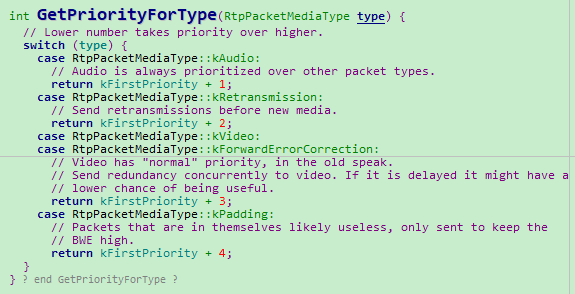 音频,视频、NACK、FEC,PADDING报文都要统一从PACER模块发送。若不区分报文优先级,势必会对系统延时产生很大的影响。