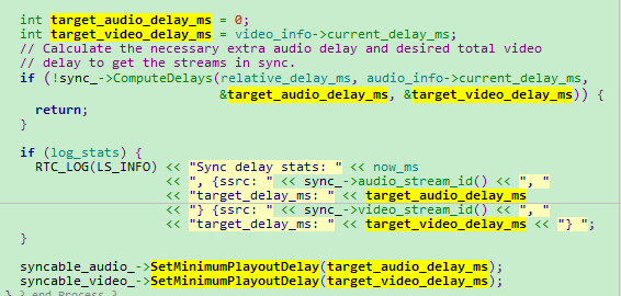 RtpStreamsSynchronizer::Process函数生效计算出来的音视频目标延时。