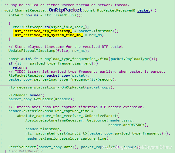 webrtc的BWE模块用Trendline算法评估网络延时,计算原理是根据报文发送时间与接收时间差,计算网络延时。在RTP报文的extension字段中会携带该报文的发送时间。所以我们这里获取到的ntp_time_ms就是该报文发送时的系统时间。