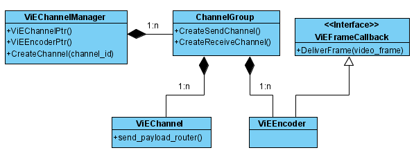 2)ViEChannel类:封装了编码后的视频数据发送逻辑和视频数据接收解码逻辑。