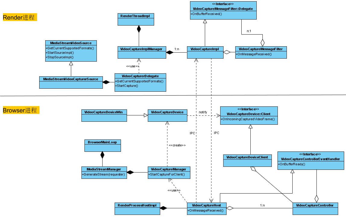 MediaStreamVideoSource封装了Chromium视频采集的入口,这块结构就复杂了,牵涉到跨进程的架构,如下: