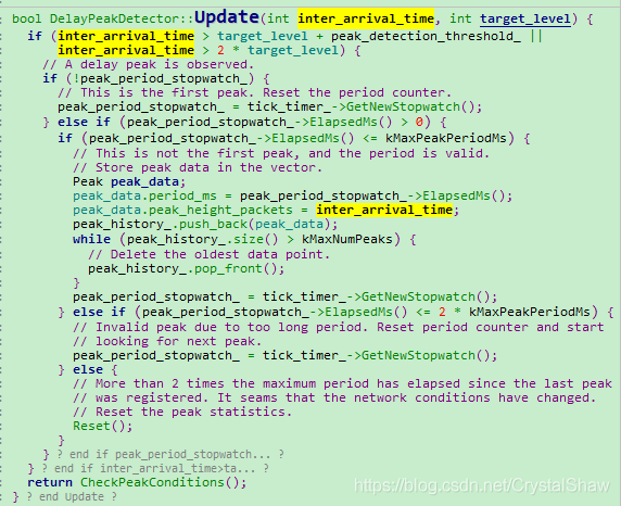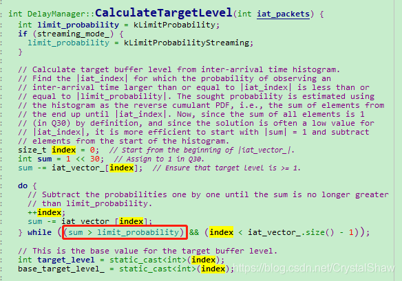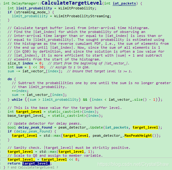 target_level_参数由两个因素决定:IATVector直方图、DelayPeakDetector检测kMaxPeakPeriodMs秒周期内抖动的峰值。