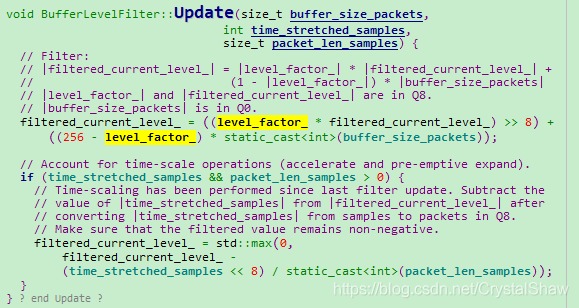 filtered_current_level_变量计算的核心函数。这里可以看出filtered_current_level还需要根据time_stretched_samples参数进行微调。因为之前对音频数据进行快进或者快退,播放时间不完全等于缓存时间。