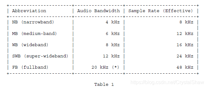 Opus支持码率从6 kbit/s到510 kbit/s的切换功能,以适应这种网络状态。以20ms单帧数据编码为例,下面是各种配置的Opus的比特率最佳点。