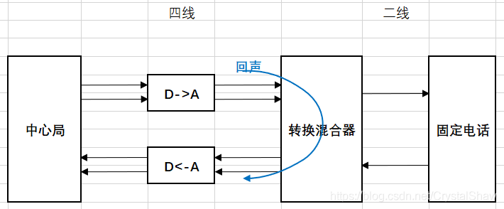 目前大家可能很少听说电学回声,过去使用固定座机电话时,会有电学回声问题。它的产生原理如下:
