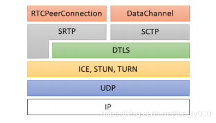 - WebRTC中的SCTP并非是OSI模型中的传输层协议,而是应用层协议,并且使用STCP时,必须使用DLS。如下图所示: