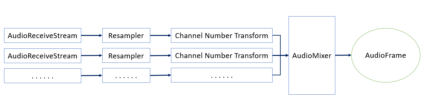 WebRTC 的 AudioMixer 将 0 个、1 个或多个 Mixer Source 混音为特定通道数的单路音频帧。输出的音频帧的采样率,由AudioMixer 的具体实现根据一定的规则确定。