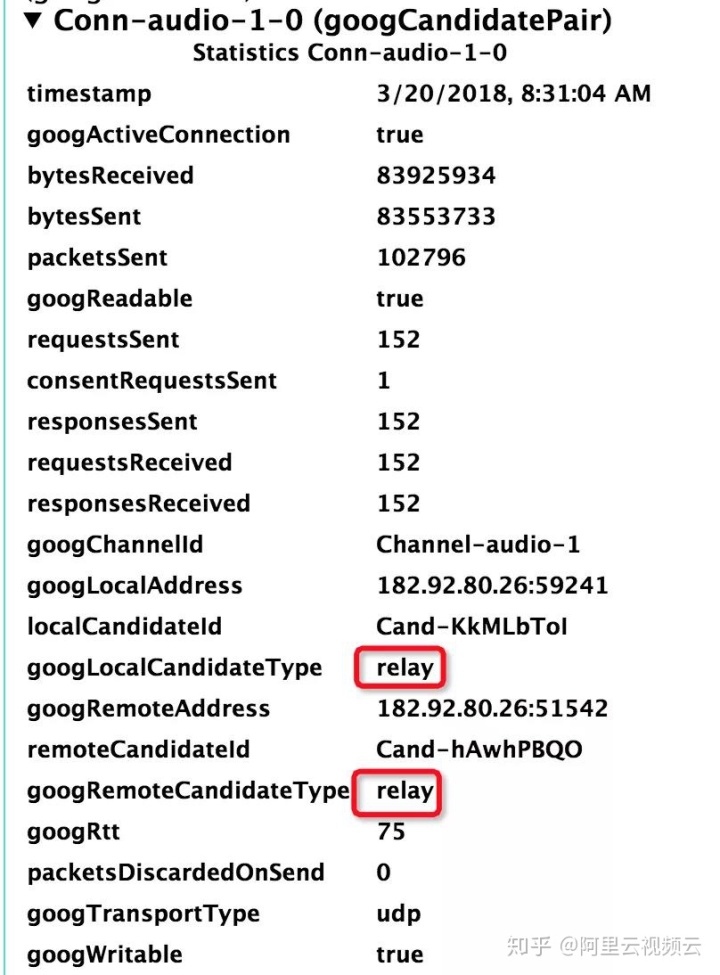 最后 Alice 和 Bob 通信的 Candidate pair,选择的是 UDP 通道:
