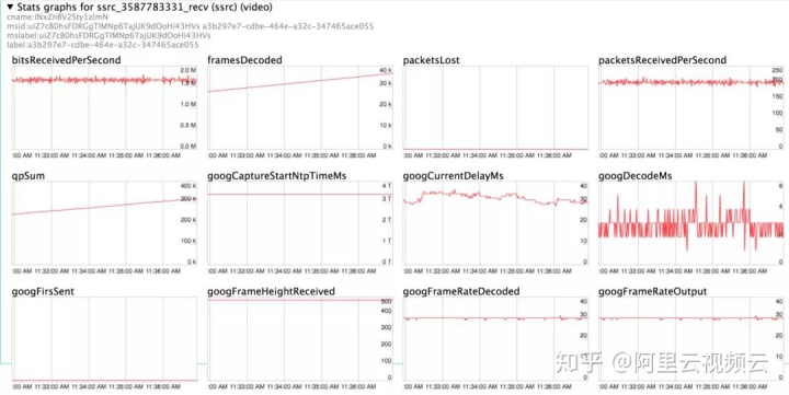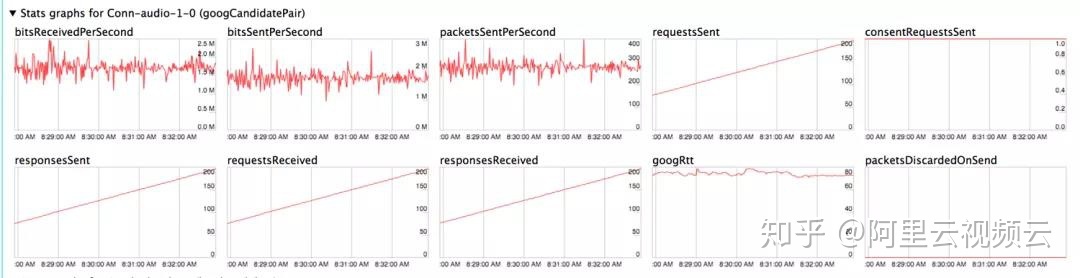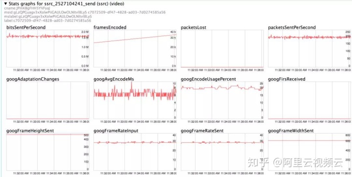 从这个图中能看出来这个传输通道的发送和接收码率、包的个数、RTT 和丢包率等信息。