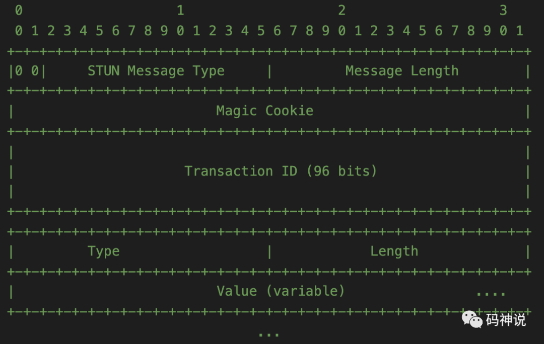 也就是说在该规范中,Transaction ID 是 128-bit,RFC5389[4] 规范以及 RFC8489 规范中 32-bit 的 Magic Cookie 其实是老规范中 Transaction ID 的一部分。