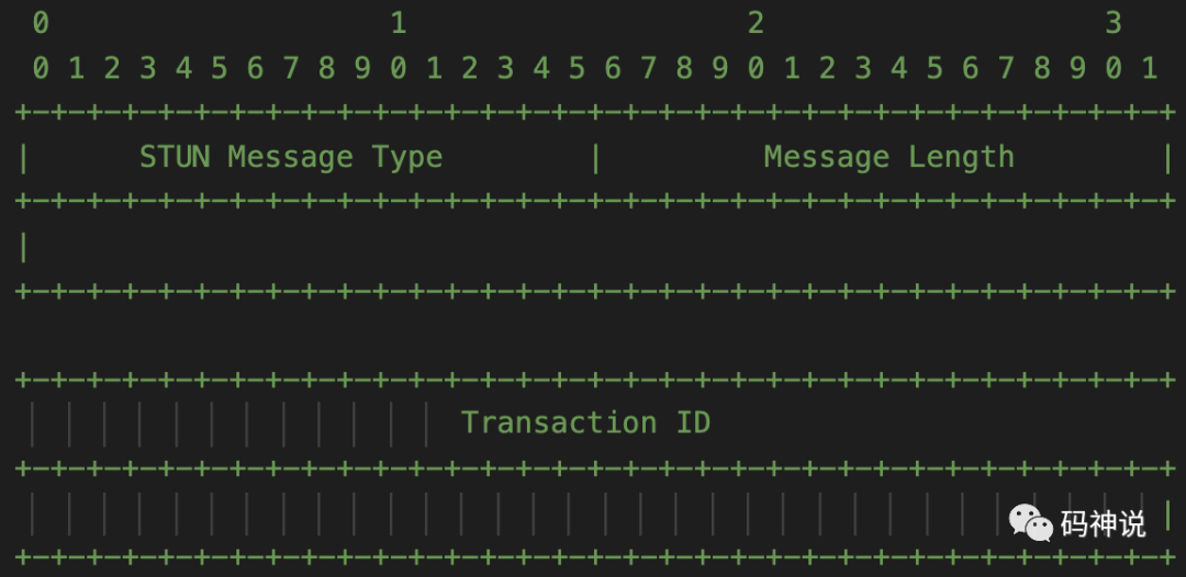 另外,在 RFC3489[3] 规范中,STUN 消息的头部格式参考下图: