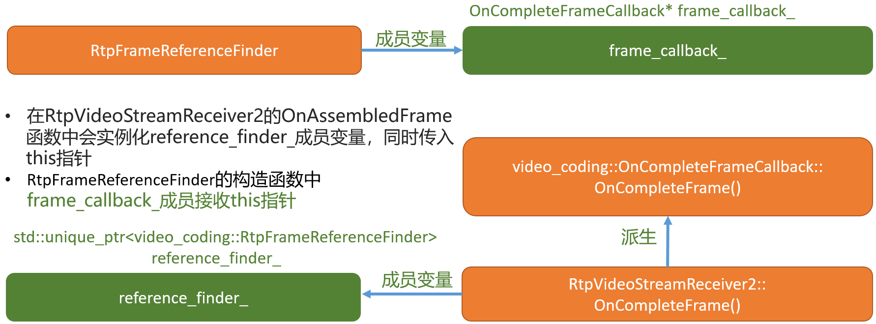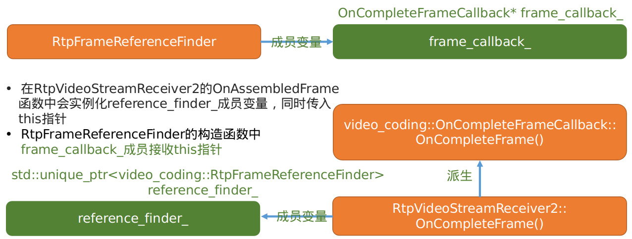 RtpFrameReferenceFinder,RtpVideoStreamReceiver2,OnCompleteFrameCallback之间的关系。