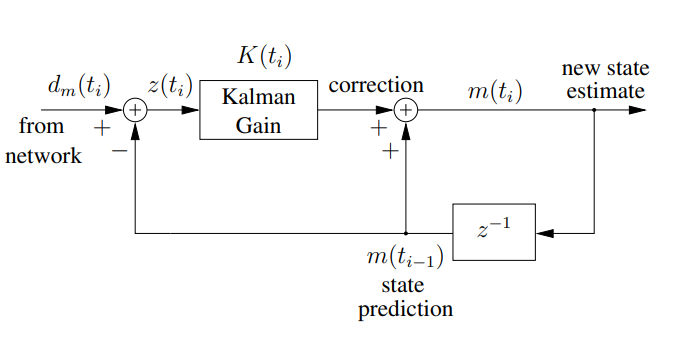 到此为止卡尔曼滤波的一次更新以及迭代完成,总结其过程,卡尔曼滤波主要是为了得到较为准确的信道传输速率的倒数