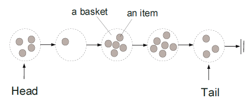 每个菜篮包含一组无序元素,这种定义看似违反了队列-FIFO的基本特性;也就是说队列变成了非公平。FIFO是针对菜篮的,而非菜篮中的元素。倘若菜篮用来插入的时间段非常短暂,我们可以忽视菜篮中无序项。(译者注:时间短意味着,没放几个就创建了新的菜篮,因此可以近似地看做是FIFO)