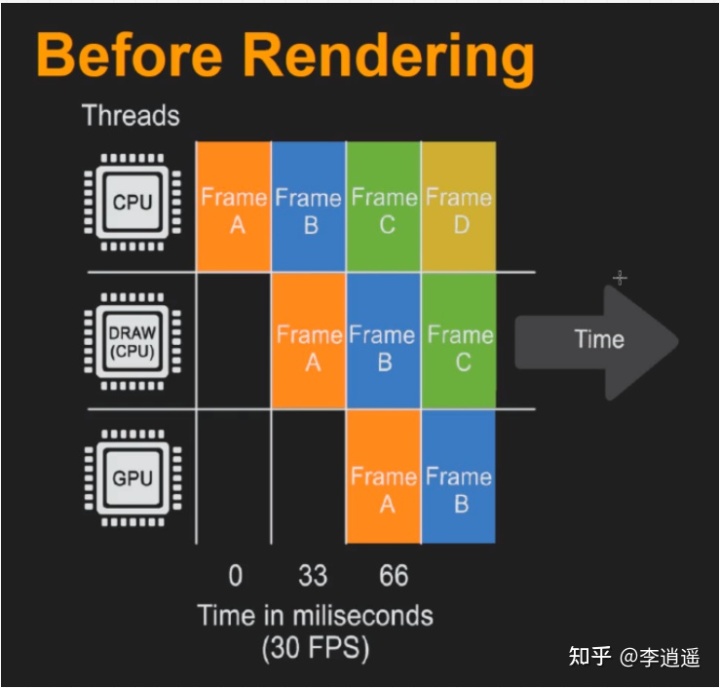 现代游戏引擎每执行一次Tick的时候系统就会把所有该做的事情做完(可以简单理解为Trick使虚拟世界动起来了),我们在33ms内把整个世界的logic和Render都跑了一遍。