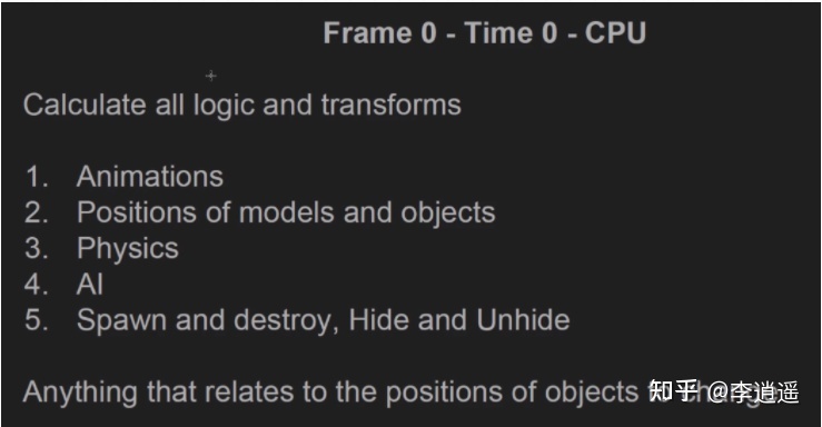 首先CPU进行计算,计算内容包括所有逻辑和变换,因为知道一切对象所在的位置是渲染对象的前提。