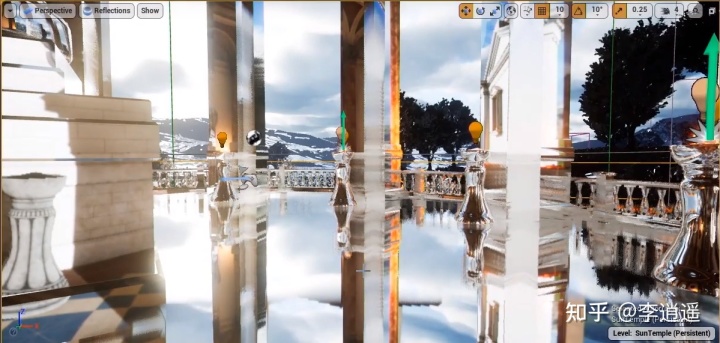 Reflection Captures(反射捕捉)对于镜面效果并不好,而平面反射的精确度要高得多。但是平面反射消耗比较大,而且只能用于平面。