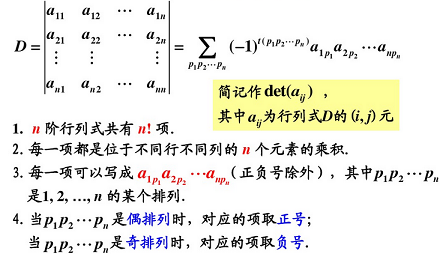 矩阵的行列式,determinate(简称det),是基于矩阵所包含的行列数据计算得到的一个标量。是为求解线性方程组而引入的。