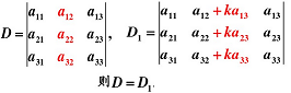 性质6 把行列式的某一列(行)的各元素乘以同一个倍数然后加到另一列(行)对应的元素上去,行列式不变.