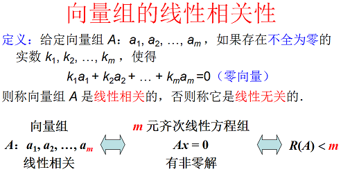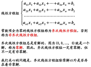定理5′ 如果齐次线性方程组有非零解,则它的系数行列式必为零.