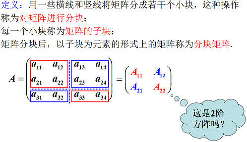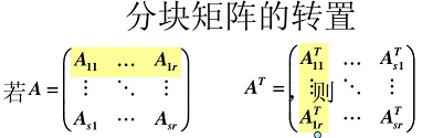 分块矩阵不仅形式上进行转置,而且每一个子块也进行转置.