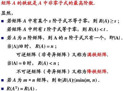 结论:矩阵的最高阶非零子式一般不是唯一的,但矩阵的秩是唯一的.