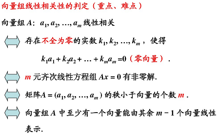 行列式非零<=>矩阵可逆<=>方阵满秩<=>向量组满秩(向量个数等于维数)。