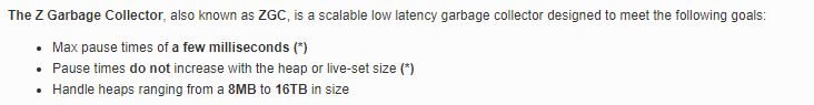 -XX:+UnlockExperimentalVMOptions -XX:+UseZGC