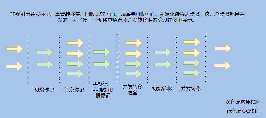 ZGC 的步骤大致可分为三大阶段分别是标记、转移、重定位。