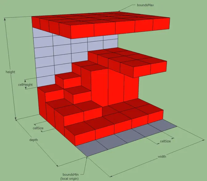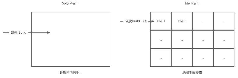 tile分割的思想:在处理动态阻挡时,由于单个阻挡对地图的影响区域是有限的,所以会采用将地图切割成多个固定大小的tile,以tile为单位进行网格的生成。这样在添加或移除阻挡时,只需要处理与阻挡相交的tile,而不需要处理整个地图。