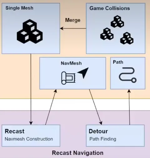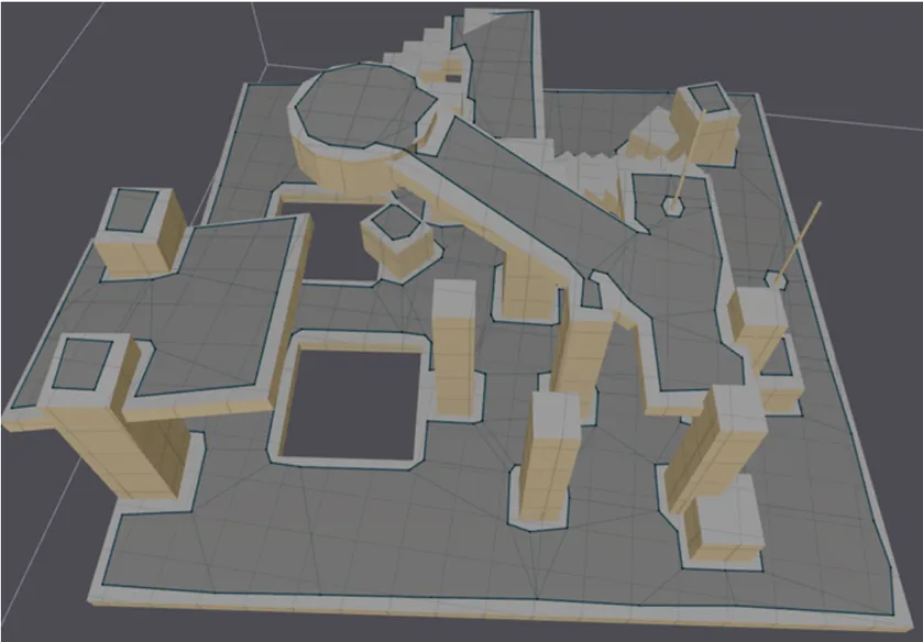 在各种情况下,希望能够表示智能体以各种方式离开环境地面的可能性。例如,在电子游戏中,可能需要表示敌人从上面的地板上跳下来攻击玩家的可能性。或者,可能需要表示代理可以使用电梯(电梯)在建筑物的楼层之间移动。Recast支持使用off-Mesh Link表示有关此类“网格外连接”的信息,并在查找代理路径时将任何网格外连接集成到搜索图中。