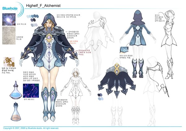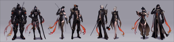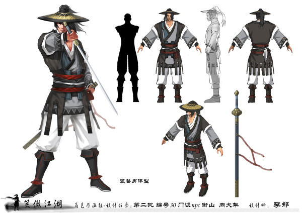 在经过概念设计的工作之后,我们会拿到一些概念设计线稿,其中包含许多角色。Character Design这项工作就是在那些角色线稿的基础上继续设计,完成服装配色、材质表现等其他工作。其工作过程请参考:
