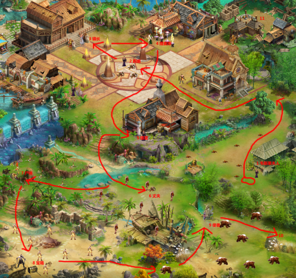 我当时为这张新手村地图(场景 / 关卡)设计 Stroyboard。包括单个任务设计、任务流程、剧情安排、行动路线设计、NPC/怪物分布设计。需要考虑的东西也很多,比如:玩家进入场景后看到的第一屏是怎样的,第一个任务如何预热玩家 / 调动兴趣,怎么安排基础操作教学,第几分钟大概到什么地点什么任务,什么时间安排具有挑战性的事件,用什么物品来为大的奖励做铺垫,如何行动即不重复又能游览全部场景等等。