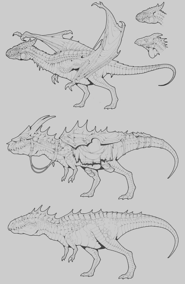 工作提交:(上面的"龙 - 雕刻过程",Wandah K 已经为其简单的绘制了贴图,这是下一步的工作。)一般来说,我们的 Modelling 工作结束后,会得到干净的素模,如下: